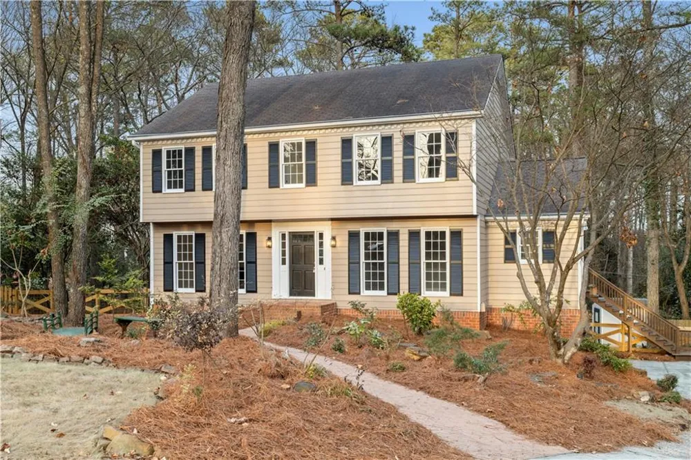 Beautifully updated 4 bedroom, 3.5 bath traditional home nestled on a quiet cul-de-sac lot in a desirable swim and tennis community, offering timeless charm paired with modern comfort in every space. From the moment you arrive, you’ll be welcomed by manicured landscaping, a charming pergola, and a serene koi pond creating a peaceful front yard retreat. Inside, crown molding flows throughout the home, adding elegance to the spacious living areas. The stunning kitchen features crisp white cabinetry, ample counter space, a breakfast bar, and a bright breakfast room perfect for everyday dining and entertaining. The family room is anchored by a cozy fireplace, creating a warm and inviting gathering space. A convenient main level laundry room offers a full wall of cabinetry for added storage. Upstairs, the spacious primary suite is a true retreat with his and hers walk in closets and a beautifully renovated ensuite bath featuring double vanities and a luxurious walk in shower. Three additional bedrooms and a well appointed hall bath provide comfort and flexibility for family or guests. The finished basement expands the living space with a large recreation room featuring a wall of built ins, a full bath, closet, and ground level access. Which makes it ideal as a 5th bedroom, in law suite, guest retreat, or private home office! The basement also includes the two car garage and access to the unique enclosed patio beneath the deck, complete with tile flooring and views of the fenced backyard. It’s an ideal space for year round entertaining, relaxing, or hosting gatherings. With thoughtful updates, abundant living space, and multiple outdoor entertaining areas, this home offers the perfect blend of comfort, style, and functionality.